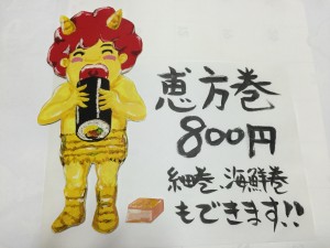 恵方巻1本800円です。ご予約承ります。
